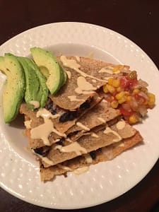 - Pre-heat oven to 385, add finished mix on your favorite tortilla and drizzle cashew cheese (recipe in link above) on the inside bake for 7-14 minutes.